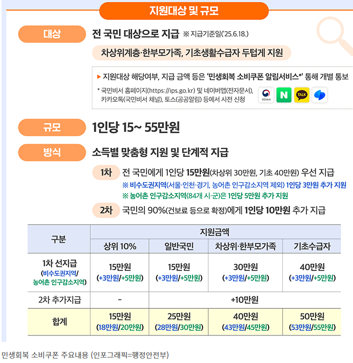 | 일반 국민 | 15만 원 (1차) + 10만 원 (2차) = 25만 원 |